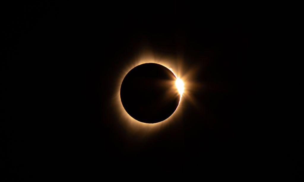 月亮的照片站在太阳在推特上上传的方式,在一个用户说,“月亮看起来正在咬了太阳。