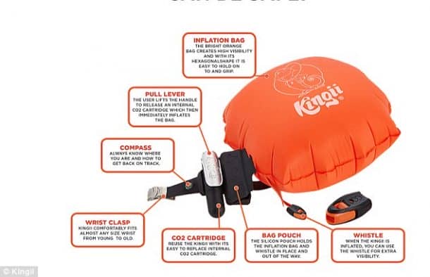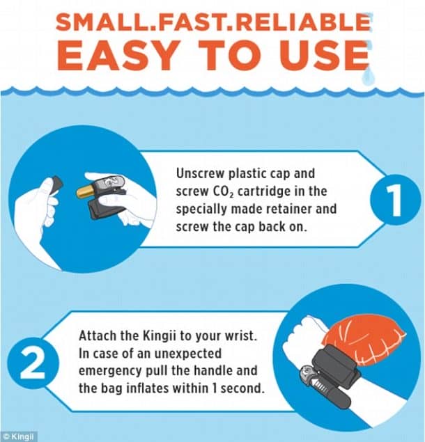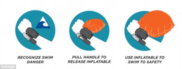 Kingii紧急腕带膨胀拯救溺水的佩戴者