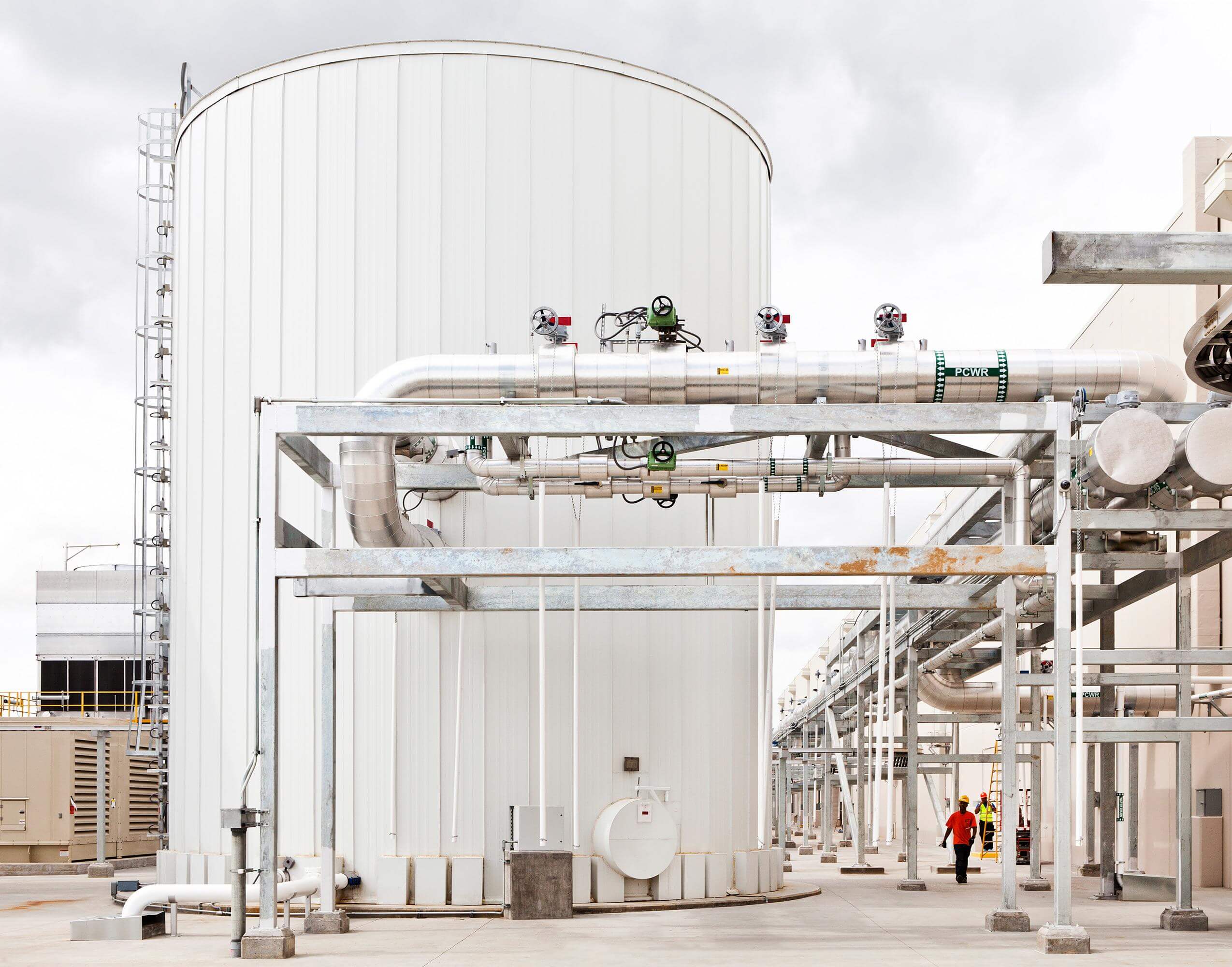 这个储水罐的容量约为90万升,用来储存水,这些水将被输送到数据中心的核心部位用于冷却。