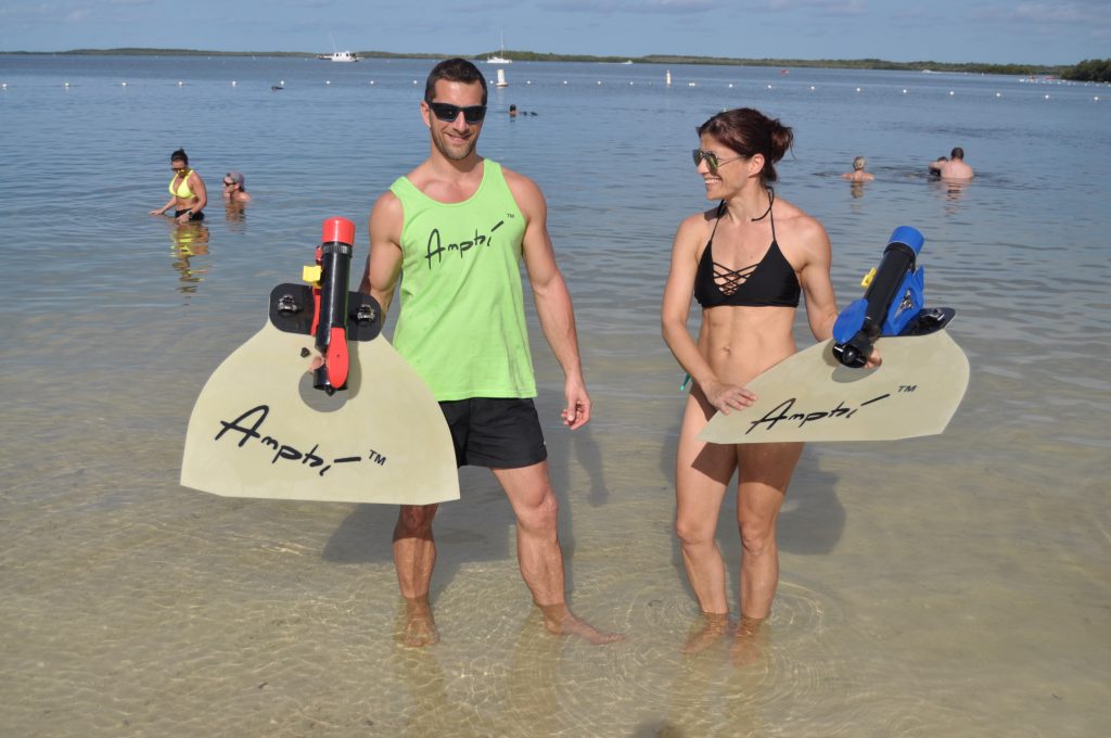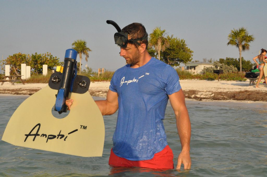 Amphi Americas LLC一直准备以其水下推进的新方法进入水下设备市场。Amphi是一个单芬,具有内置推进器,可将游泳者推到水中。