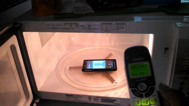 这进一步意味着手机应该无法在微波炉内响一次。物理女孩的测试表明,在某些情况下是正确的,但是在某些情况下,您可以成功打电话。微波使用法拉第笼子,它将其内部的任何东西都避免外部电磁场。