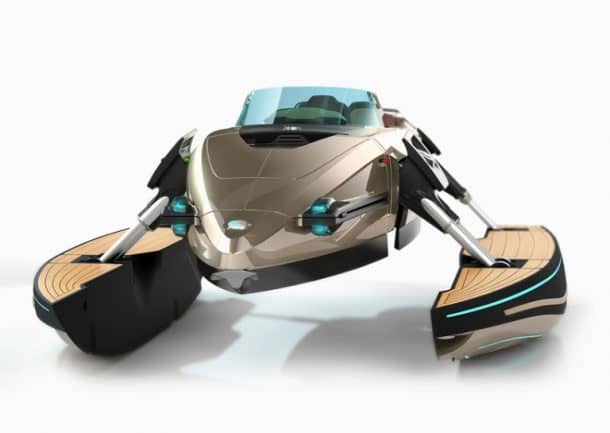 Kormaran使用HoloLens混合现实技术在今年的迪拜国际游艇展上展示了高科技豪华K7。23英尺高的Kormaran K7可以通过按一个按钮改变形状和飞行员设置。变压器船体由碳纤维和电子激活钛和不锈钢液压缸组成,这使轻型船吸收足够的力量。当液压臂向内拉伸时,船体就会折叠成单体船。当船体部分展开时,身体站在水面以上,充当双体船的双船体。当完全展开时,船被淹没在水中形成三体船。一组可折叠的水翼船将身体抬出水面,使它变成一艘单体船。单体提供了一个平稳的乘坐在方程式1的结构与水阻力减少80%,这使得它消耗更少的燃料。