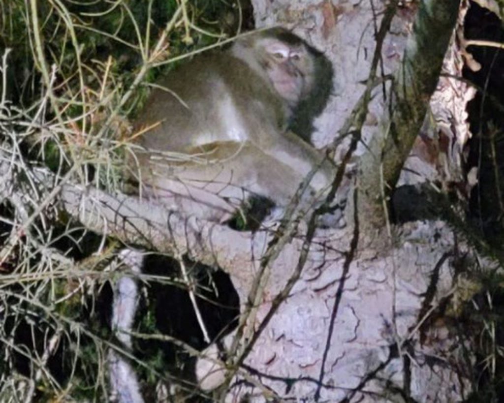 以前认为发生碰撞后四只猴子失踪了。然而,据消息人士称,cynomolgus猴子是由配备红外摄像机的警察直升机追踪的,而地面上的警察则使用明亮的手电筒。