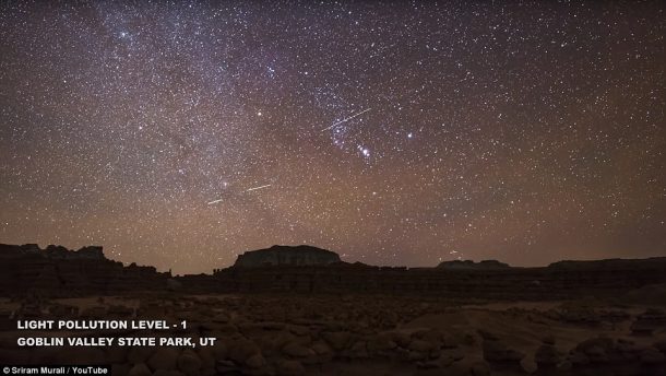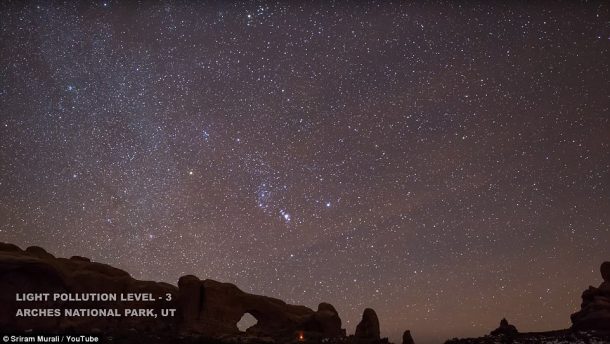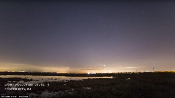 一部名为《迷失在光中II -关于光污染的短片》的短片揭示了这种污染是如何在美国许多主要城市掩盖恒星的,因为它伴随着猎户座星座在全国各地。它表明,在农村地区,你甚至可以看到银河,这是发达地区造成的问题。