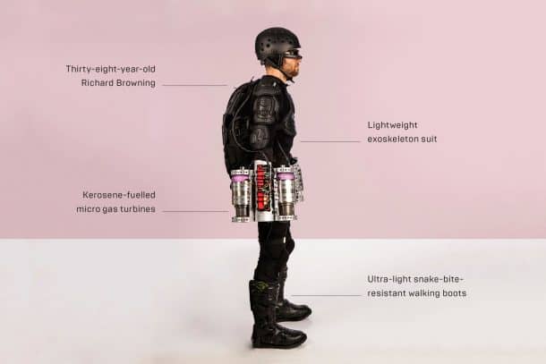一家英国科技初创公司就是这样一个例子重力该公司由理查德·布朗宁(Richard Browning)创立,旨在开发一种类似于钢铁侠套装中使用的人体推进系统。他使用微型喷气发动机和定制的外骨骼,旨在彻底改变航空世界。