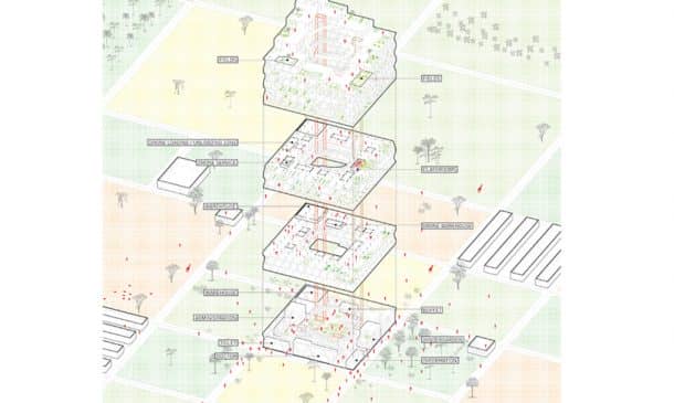 设计师计划采用无人机来携带,包括建筑和农业原材料,以及将产品运输到有需要的和难以到达的地区。一楼的市场将鼓励该地区的商业活动。希望,当当地社区变得自给自足以使整个建筑物从一个地方转移到另一个地方时,很快就会出现一个观点。