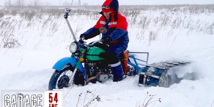 这个过程并不是那么简单,也没有没有挂钩。当车辆的后轮胎在雪中缺乏时,就会出现第一个并发症。制作了由钢筋橡胶条制成的轨道,以克服这一挑战,并使用了管状钢。问题仍未解决。