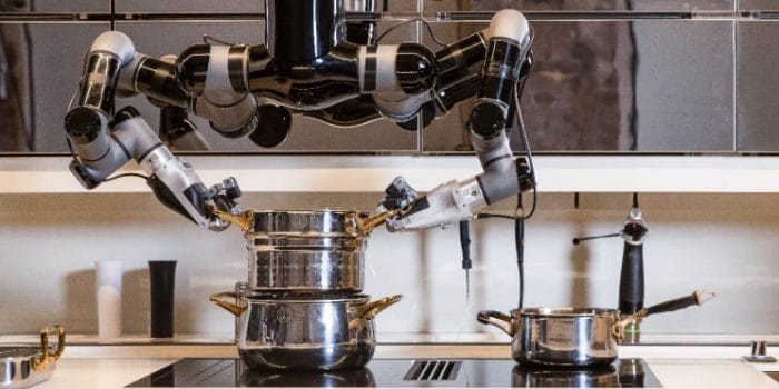 这款新产品的新闻稿称,机器人厨房系统可以像人类助手一样抓取食材、调节炉子温度、使用水槽盛锅、摆放盘子。这使得这项新发明可以独立完成厨房里所有我们能想到的工作。