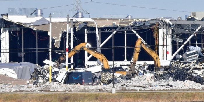 周五晚上,在中西部和南部遭遇极端天气和龙卷风后,伊利诺斯州爱德华兹维尔市的亚马逊仓库倒塌。来自路透说,已证实至少有6人死亡,一些工人仍下落不明。