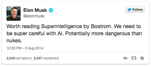 马斯克还谈到了他对人工智能的担忧,人工智能比核武器更危险。他认为,能够独立思考的机器可以让人类垮台。因此,人工智能技术应该受到监管。马斯克不仅在思考技术带来的危险,还在准备在火星上建立一个基本的生命基础设施。为了在火星上创业,人类需要玻璃圆顶、发电站和一系列基本服务。他说披萨店和夜总会和铸铁厂一样重要。