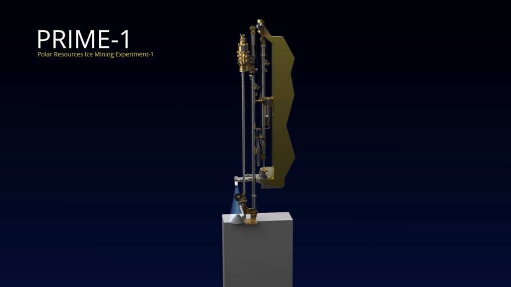 “新星C”着陆器将携带三个有效载荷,其中一个是“PRIME 1”。用于探索新地形的风化层冰钻包括一个光谱仪和一个月球风化层钻(三叉戟)。“三叉戟”旨在收集月球风化层,并将其沉积在月球表面,供质谱观测月球操作仪器(MSolo)分析。