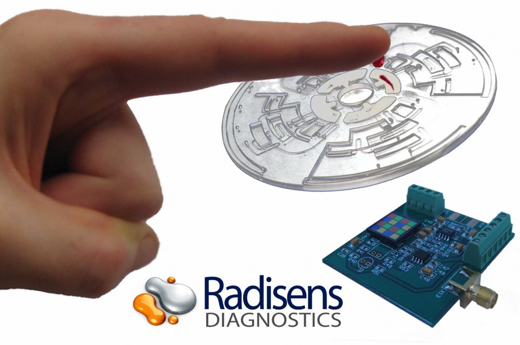 该项目是欧洲航天局和Radisens diagnostics公司的合资项目,Radisens diagnostics是一家爱尔兰公司,该公司已经在生产这种版本的设备。该装置的工作原理很简单;它使用一个旋转的小圆盘,以将血滴转化为固体和液体成分,无论如何,都可以被认为是一个迷你离心机。液体等离子体分离,然后扩散到位于圆盘上的许多室进行测试。