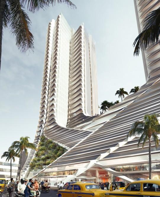 下层以某种方式融合在一起,从而使原始区域的红树林树的相互交织的根部出现。这两座塔高136米,总共包含77,000平方米的地板空间,分布在38个层面上。独特的塔楼将采用一个新颖的立面,据说可以减少直接的太阳热量增益,同时最大程度地提高自然通风。