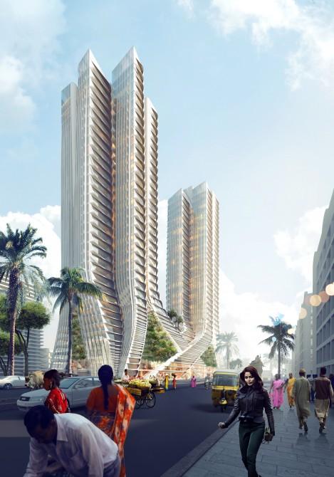 孟买的一个雄心勃勃的项目包括丹麦建筑公司3xn的两个大型可持续混合用途塔楼。惊人的概念具有一个吸引人的交织设计,让人联想到纠缠的树木,这是对塔者功能的一个很大的提示。