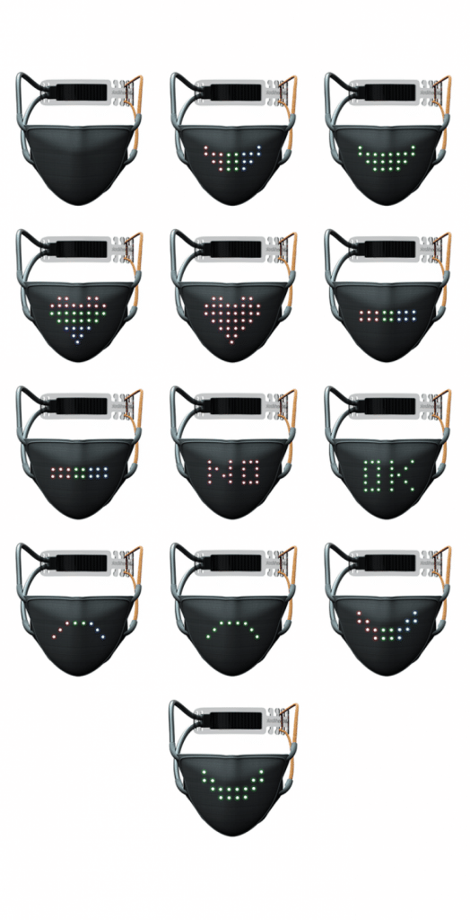 它的设计方式是通过led灯呈现面部表情;然而,有时候,它并没有摆出你想要的样子;相反,它开始创建一个矩形或圆形形状。在大多数情况下,它通过交互式语音控制成功地带出了被问到的表情,这是这款新口罩最有趣的部分。