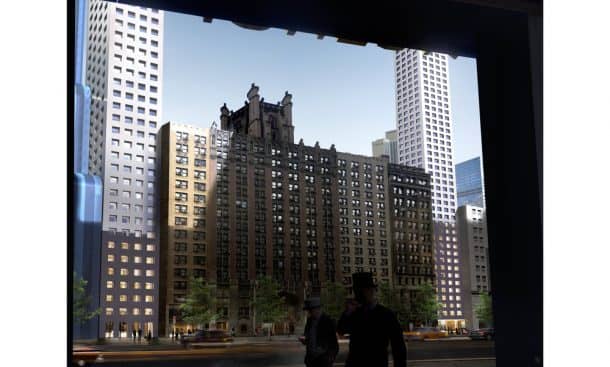大弯即使在曲率中也将包括大窗户。该建筑物将跨越纽约的历史建筑。根据最初的绘画,该建筑将沿着Calvary Baptist教堂附近的第57街站立,并在亿万富翁的行核心。