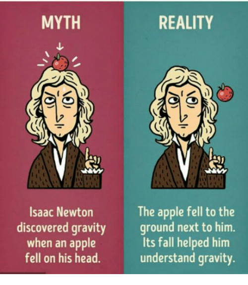 首先,他提出了“苹果掉在头上”的说法,然后牛顿顿悟道,地球上的一切都是向地心坠落的。他还声称,引力是月球从不离开地球、地球从不离开太阳的原因。虽然伦敦皇家学会(London Royal Society)保存着一份手稿,可能会让我们找到真相,但没有证据证明这种情况发生过。手稿已通过数字方式提供在这里.然而,英国皇家学会档案负责人基思·摩尔怀疑这个故事可能不完全是真的。