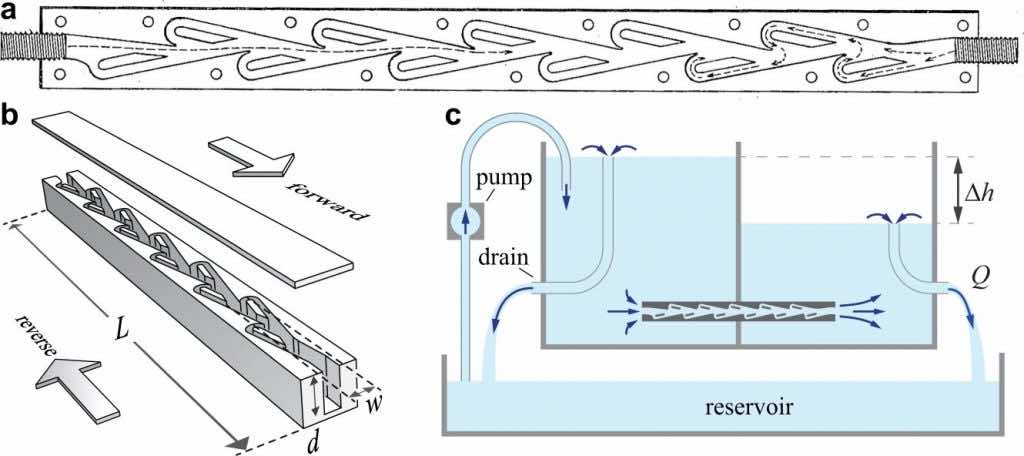 它基本上是一个固定几何的被动式止回阀,仅允许流体流向一个方向。最大的事情是它没有运动部位,因此寿命更长。该发明在1920年获得了专利,如下所述:“导管的内部有扩大,凹槽,投影,挡板或桶或水桶,同时几乎没有对液体在一个方向上的抗性,除了表面以外摩擦是沿相反方向流动的几乎无法通行的障碍。”