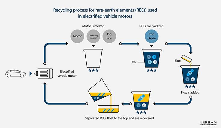 Nissan Motor Co. Ltd.已开发了一项新技术,以降低电动汽车磁铁电动机(EV)中使用的稀土的回收成本。