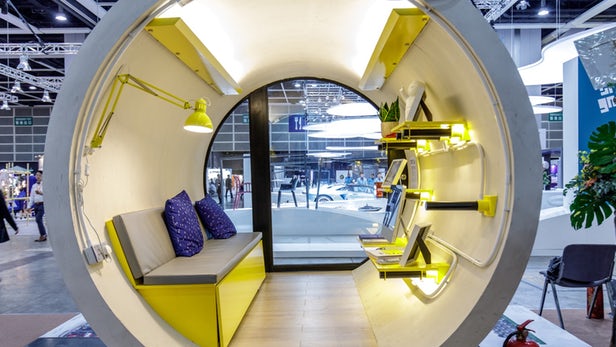 OPod管房子设计记住香港的住房短缺问题。玻璃门提供房子和它包含的总建筑面积100平方英尺。居住面积由沙发床,书架和一些存储空间。混凝土管的另一个部分是连接到后方提供厨房和小浴室淋浴和厕所。