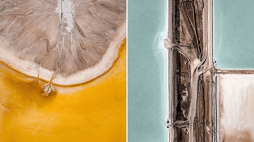 德国空中摄影师汤姆·赫根(Tom Hegen)专门捕捉人类在地球表面留下的烙印。他的绘画和绘画展示了人类,改进和使用资源的地方。他最近的系列显示了“锂三角”。可以在智利,阿根廷和玻利维亚的边界相交的地方找到丰富的自然资源区域。此外,智利北部的Salar de atacama盐公寓含有世界四分之一的盐储备。