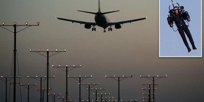 试想一下,如果喷气背包落在离着陆飞机几英里的地方,情况会变得多么糟糕。喷气背包的飞行员肯定是被吸进了引擎,死亡了,这也可能使乘客的生命处于危险之中。除此之外,一架价值数十亿美元的飞机也可能严重受损。喷气背包航空公司(Jetpack Aviation)的大卫·梅曼(David Mayman)提出了“军用级加速器和喷气背包”的概念,将它们的唯一用途保留在紧急程序中。然而,他也用他的喷气背包在民用飞机上教学。