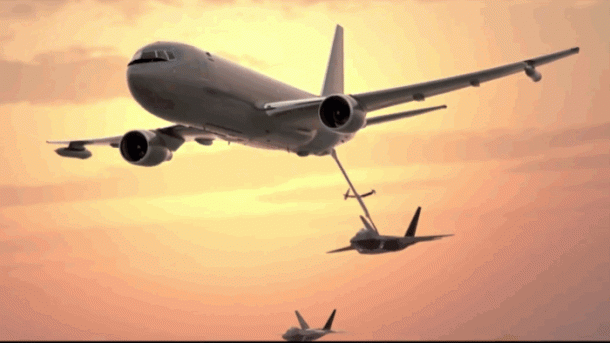 AF1飞机最惊人的特点之一是它的加油能力。使用改进的加油机,AF1可以空中加油,同时允许飞机无限期地维持飞行。当AF1飞机小心地定位时,后面的输气管道会延伸,飞机前面的加油装置会打开,让燃料进入油箱。定位过程对错误的容忍度小于一米。此外,它是危险的,昂贵的,被用作最后的手段。