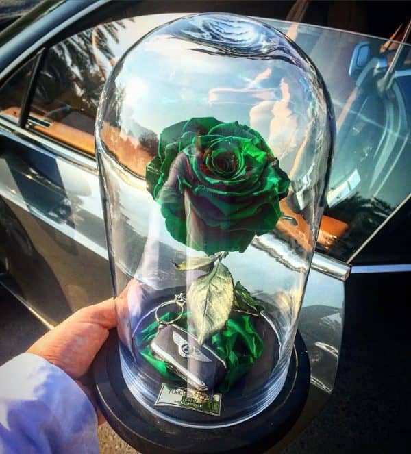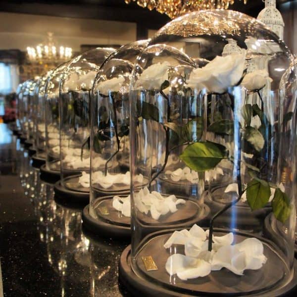 该公司最受欢迎的产品是美丽的玫瑰,这是一个单杆红玫瑰在一个玻璃圆顶的“美女与野兽”,起价200美元。