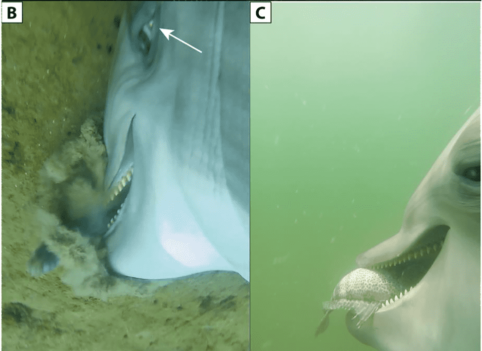 研究人员写道:“即使鱼儿进入海豚的嘴里,它们仍在继续游泳,但海豚似乎直接把鱼吸了下去。”他们将这一过程归因于齿鲸和其他海洋哺乳动物使用的一种喂养方法,即捕食者扩张喉咙,将猎物吸下去。