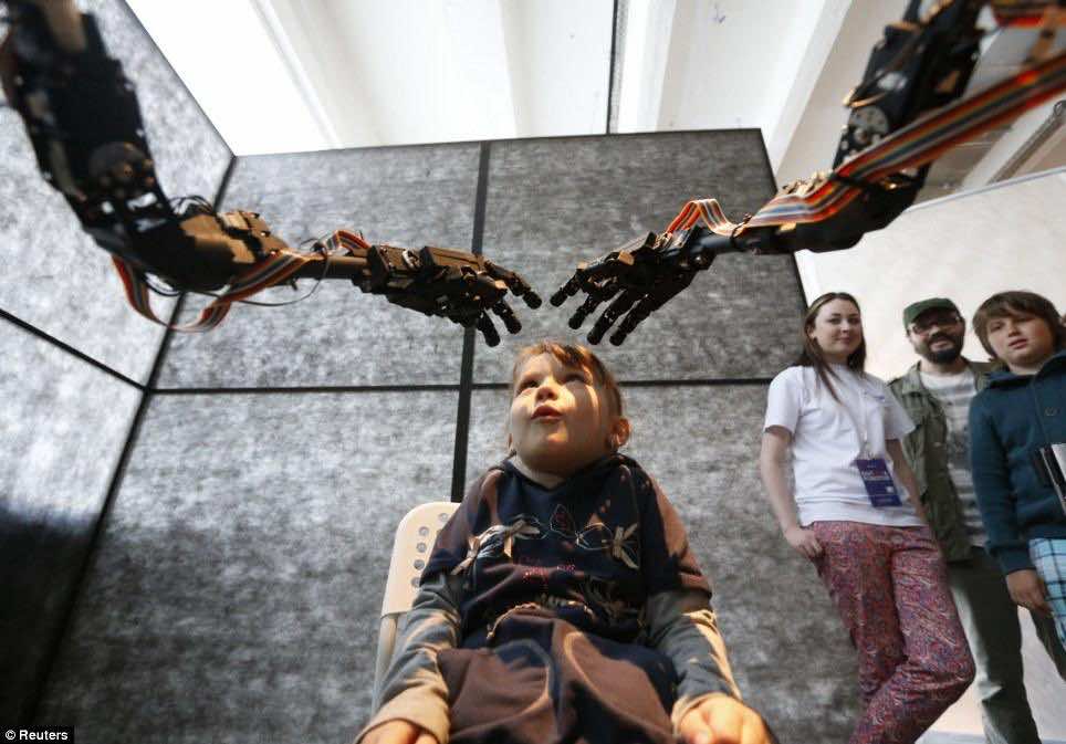 机器人球在莫斯科展览一个月长,大约40机器人来自世界各地,包括加拿大、美国、英国、亚洲、和新西兰。