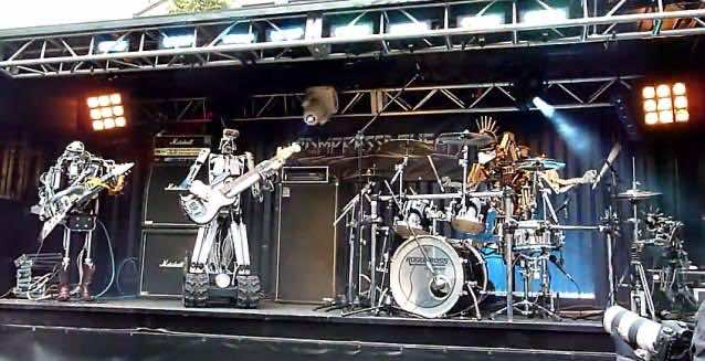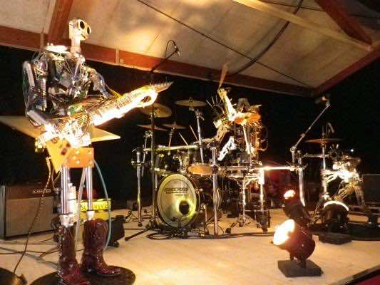 世界唯一的机器人乐队的成员是四名武装鼓手,Stickboy,贝斯手骨头,和79 -位吉他手,手指。机器人都是由废弃,由电气动控制,并使用Midi信号实现音乐。
