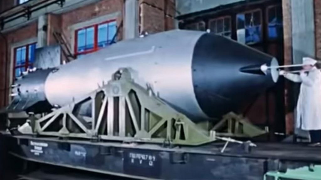 邦巴(Bomba)在Severny Island海岸附近的地面近4000米处,被抛弃了。这是一场巨大的爆炸,可以看到多达620英里的地方,而它产生的巨型蘑菇云在空中上升到42英里。