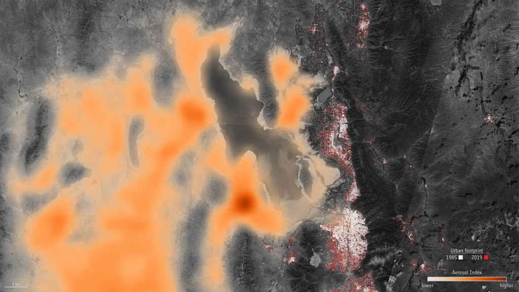 这欧洲航天局卫星的新照片显示了犹他州大盐湖的水位下降的程度,这是在获得有史以来最低水位的一个月后。