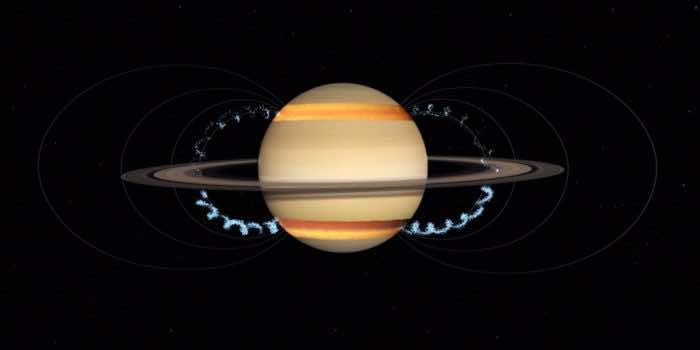 土星可能是太阳系中最美丽的行星。一串又一串结霜的东西,加上一点石头,放在一个脆弱的戒指里。仔细观察会发现在黑暗中闪烁着微妙的粉色、灰色和棕色。很难想象没有它们的土星会是什么样子。然而,土星的光环并不是一个永久的特征。事实上,它们正在走向灭绝。每年,戒指都在失去实质内容。进入的微陨石和太阳射线扰乱和现代化的微小,尘埃环材料碎片。出乎意料的是,这些粒子对土星的磁通量变得敏感,并开始沿着那些看不见的通道旋转。当这些粒子太接近土星大气层顶部时,引力将它们拉进来,它们就会蒸发。