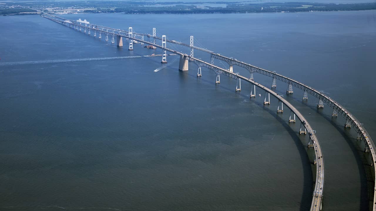 通常被称为“海湾大桥”,这是美国马里兰州的一座主要的双跨桥梁。它横跨切萨皮克湾,连接着该州的东海岸农村地区和西海岸城市地区。