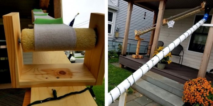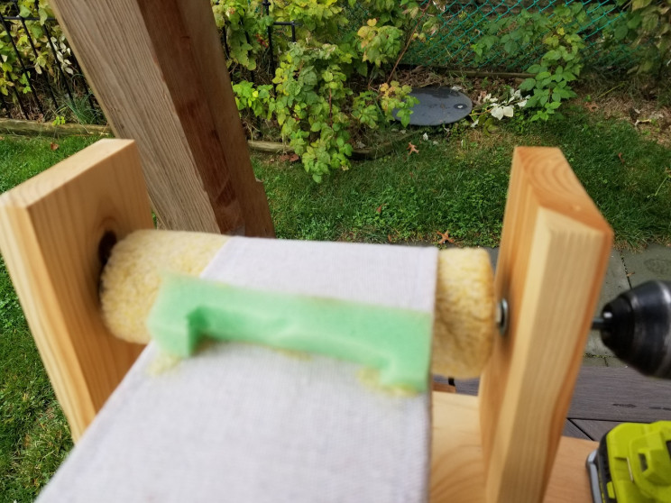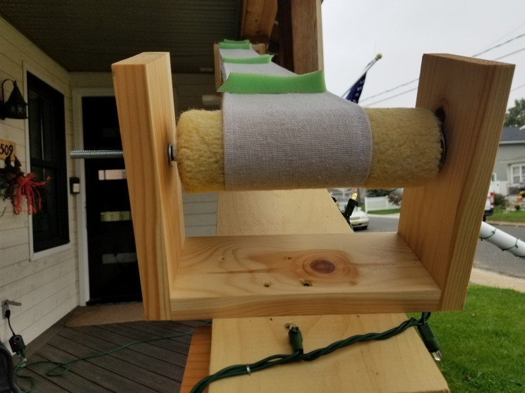 在邮件中,他写道,他剪掉了塑料把手,然后试图在金属滚轮上敲一根线,但失败了。然后他想到把整个把手拆掉,用一个带12英寸螺纹杆的滚轮保持架。