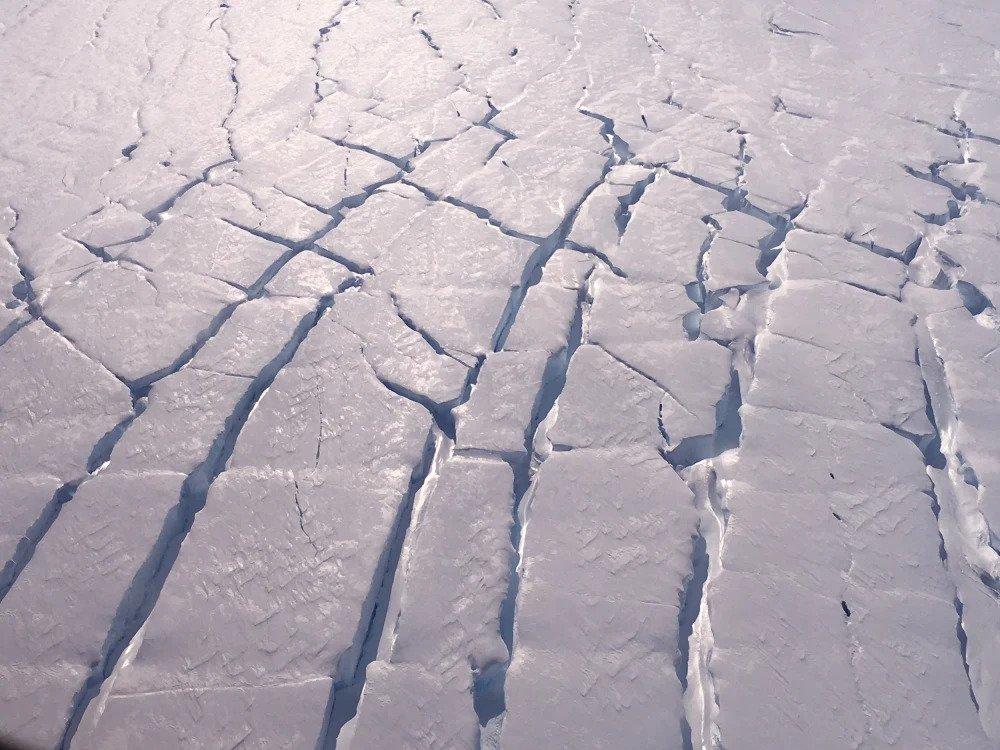 巨大的裂缝,特别是研究人员担心,导致加速融化,最终可能引发一场“冰架崩塌,”他们说。