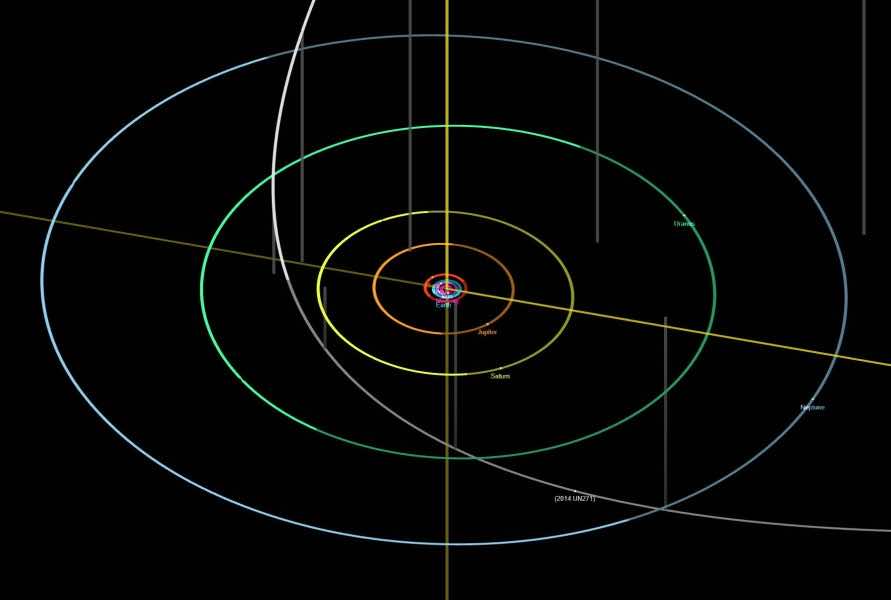 根据Sam Deen在小行星邮件列表(MPML)论坛上的一个帖子,这个大小堪比萨拉巴特彗星C/1729 P1,这是目前已知的最大的奥尔特云。UN271所走的道路并不是一条笔直的道路。它往返于太阳系内部。目前,这颗行星比海王星离太阳更近,到2031年将是离太阳最近的行星。熟练的天文学家将使用强大的设备观测到太阳在UN271表面蒸发产生的奥尔特云。年轻的天文学家很可能会错过这迷人的景象。不过,人们很可能会看到它穿过轨道。