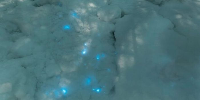 上个月,俄罗斯生物学家Vera Emelianenko到俄罗斯北极的白海海岸散步,注意到一些奇怪的事情。那是一盏蓝色的灯,看起来像圣诞彩灯。米哈伊尔·内列廷(Mikhail Neretin)的父亲是一名分子生物学家,也在同一个偏远的野外工作站工作。当时,他和两只狗都在维拉身边。第一个注意到这种奇怪的蓝光的是奈瑞汀,当他们走着去查看时,他们注意到自己的脚步创造了空灵的蓝色条纹。当他们捏捏手中的雪时,雪变得更亮了。