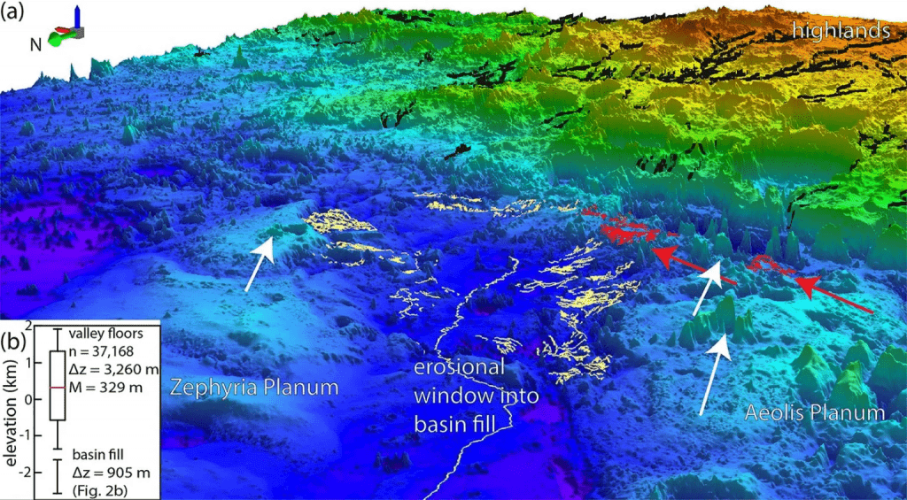 利用诸如脊系厚度、海拔、位置和可能的沉积流向方向等岩层元素,研究小组可以了解该地区古地理的演变。