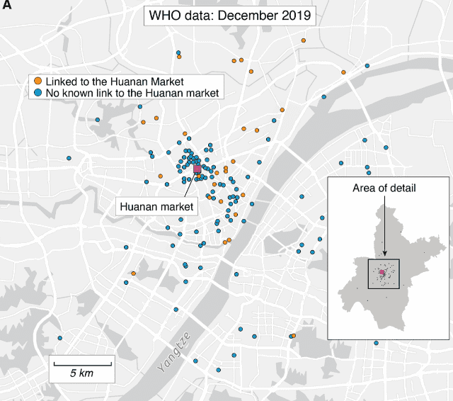 与此同时,世界卫生组织(WHO)在2021年的报告中指出,在此次大流行开始时,约有174人感染了这种致命病毒,根据科学家最近的研究,其中155人居住在长江西岸附近,而这正是武汉市场所在的位置。数据还显示,来自武汉市场的病例密度较高。这证明了病毒主要是从这个地方传播的。