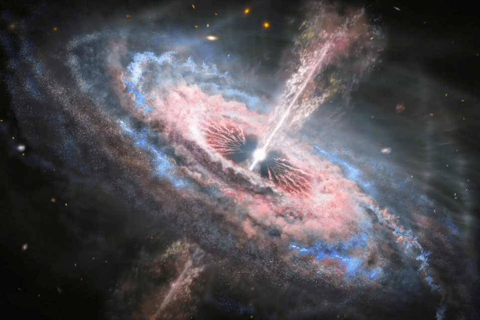 研究人员推测,大量气体和尘埃组成的光环包括超大质量黑洞。他们建议这种材料的破坏,可能是由于一个星系碰撞,导致它向内移动。当材料步步向黑洞的视界,它生成的巨大的光和热,照亮甜甜圈的一部分,加热温度12000至13000摄氏度。