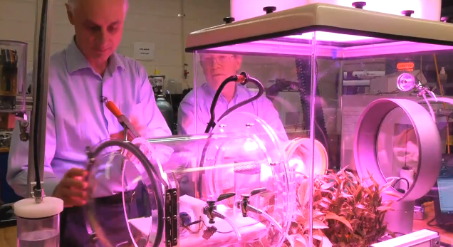 “当空气吹过时,圆盘的表面会吸收二氧化碳。大约20分钟后,碟片就满了,它们会沉入下面的桶里。我们通过水和蒸汽将二氧化碳释放到一个封闭的环境中。”