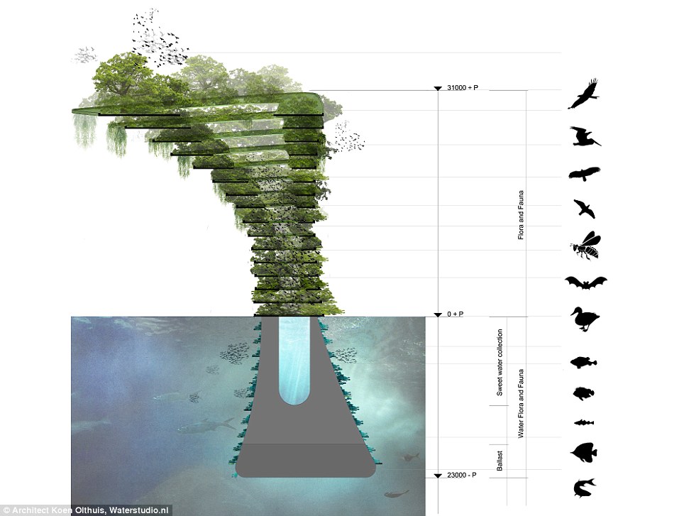 Waterstudio解释说:“设计的美妙之处在于,它提供了一种解决方案,同时不需要花费昂贵的陆地空间,而生活在海树中的物种会影响到停泊地点周围几英里的区域。”“正如我们所知,这座漂浮塔将是第一个100%为动植物建造和设计的漂浮物体。”