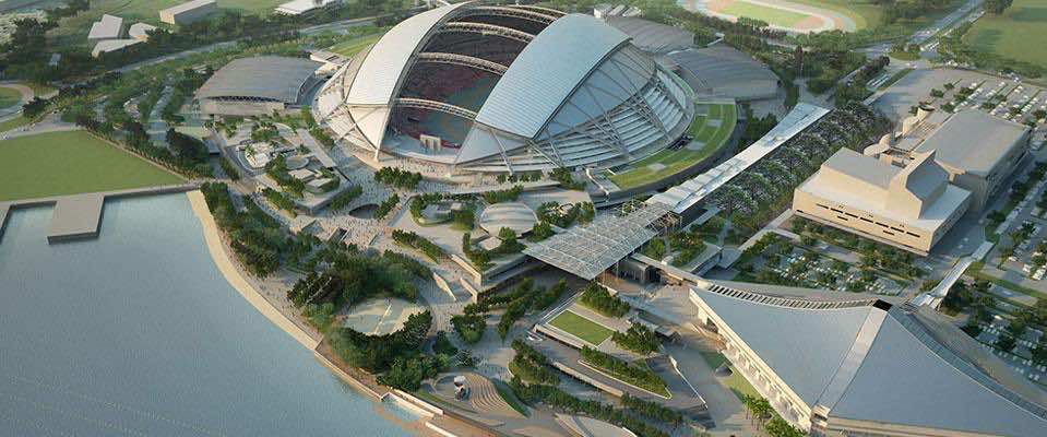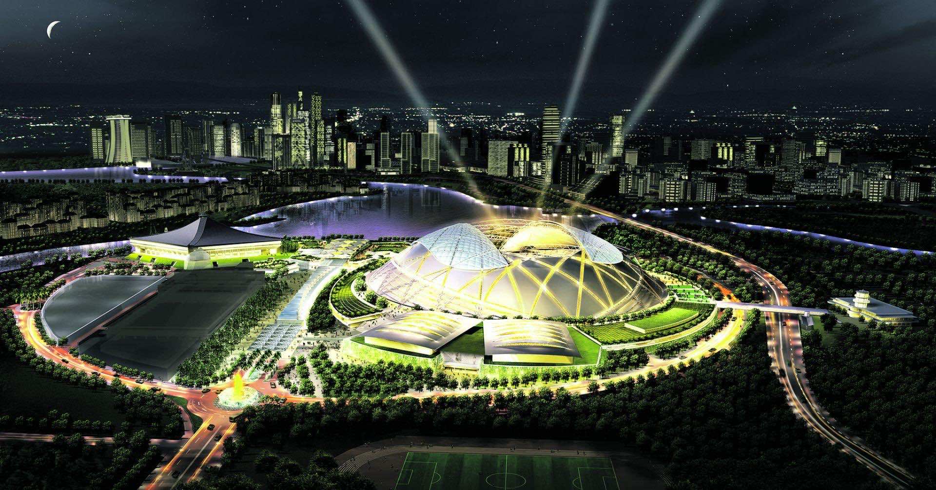 体育枢纽是该市新的国家体育场的所在地,该体育场的座位容量为55,000,也享有世界上最大的圆顶结构的头衔。国家体育场的直径为1,023英尺,赢得了121英尺的前最大圆顶结构(德克萨斯牛仔体育场)的冠军。新加坡体育枢纽的面积约为35公顷,是由当地公司设计的被称为DP建筑师。正如您可能已经猜到的那样,新加坡运动中心的核心是国家体育场。