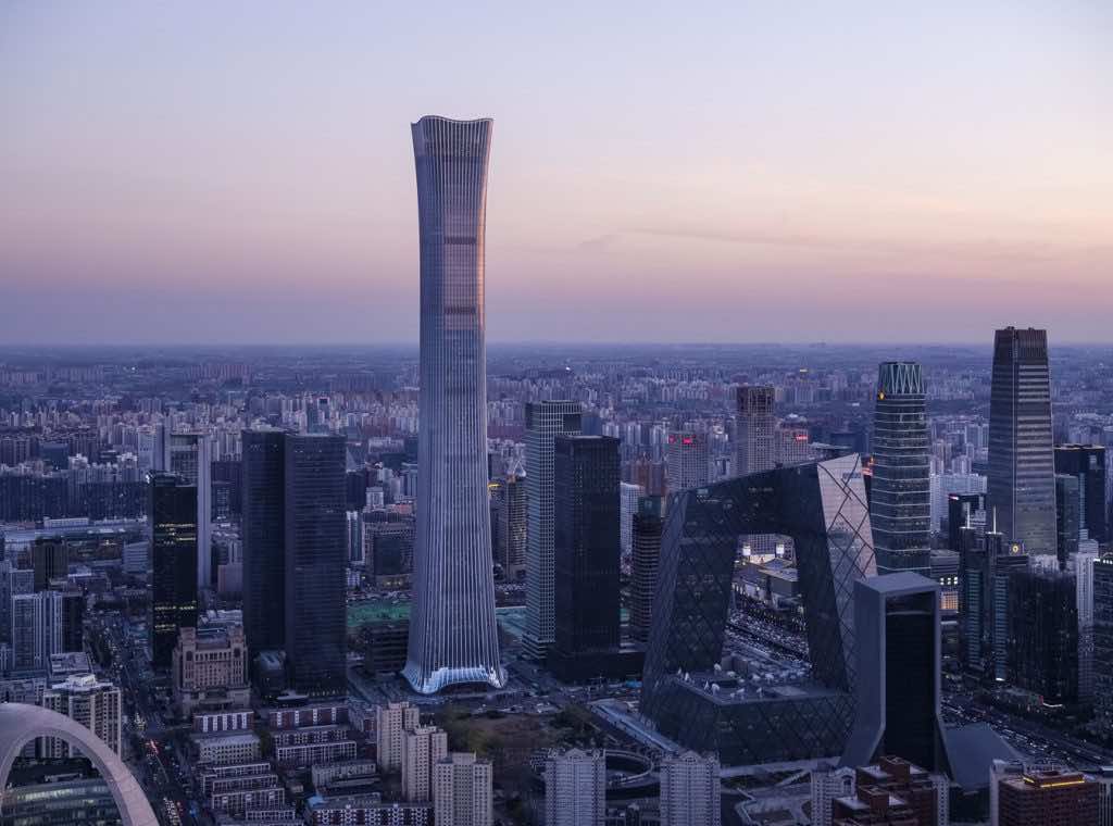 Citic Tower是北京中央商务区的109层,528 m(1,732英尺)的Supertall摩天大楼,它是该市最高的建筑。塔楼是一座综合用途的建筑,它被称为“中国Zun”,设有60层的办公空间,20层的豪华公寓,以及20层楼的酒店,设有300间客房。据开发商说,绰号中国Zun来自Zun,这是一种启发建筑物设计的古代中国葡萄酒容器。该建筑的建设持续到2011年至2018年。