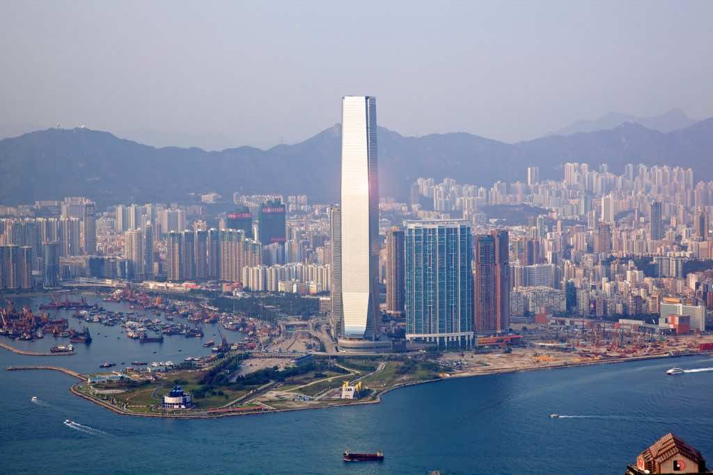 国际商业中心是香港天际线最高的建筑,是世界上最密集的城市之一,海岸线上充满了许多摩天大楼。该建筑在城市上方484米处上升,在2010年完成时,该建筑物是4米Th世界上最高的建筑。目前,这是12Th世界上最高和6Th中国最高的建筑。
