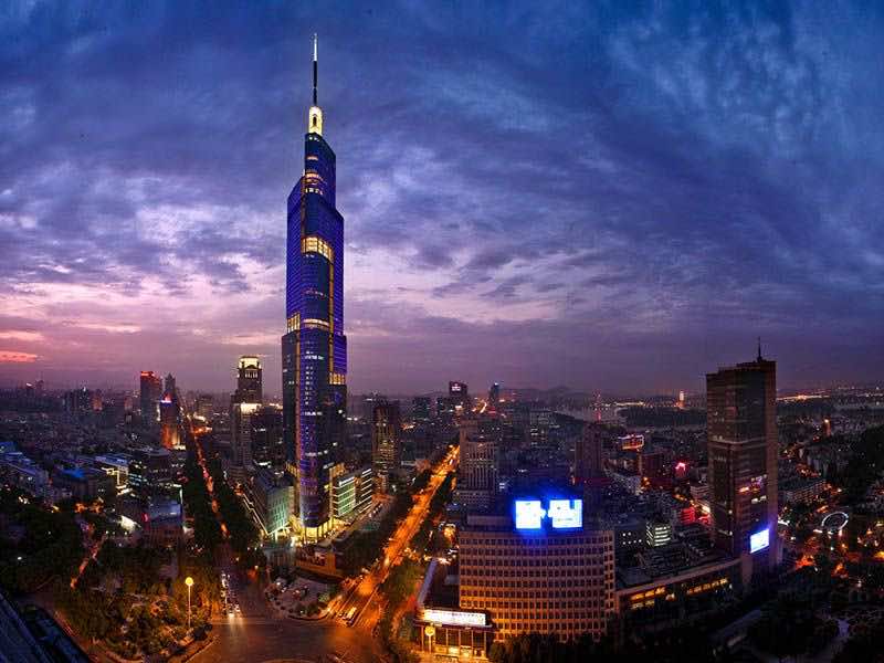 格陵兰岛Zifeng塔,原名南京金融中心,是一个450米(1480英尺)超高摩天大楼位于南京,江苏在中国。最高的建筑是目前南京和江苏省第十一最高的在中国和世界上最高20。89层大厦于2010年是一个混合使用建筑组成的零售和写字楼楼41。酒店楼层49 - 71功能,许多餐馆和公共天文台在72楼。