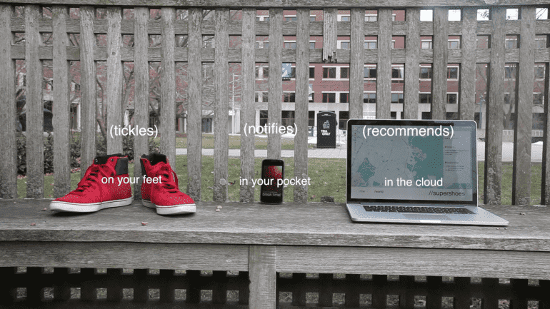 携带鞋子的人知道在收到发痒的感觉时该去哪里;如果你要向左转,你的左脚会感觉到,右脚也一样。这款应用程序还可以与你的日常生活同步,并相应地指导你,无论是慢跑时间还是购物时间。不仅如此,鞋垫甚至可以判断你的品味,并引导你去你感兴趣的地方,例如,游戏区或艺术史博物馆。