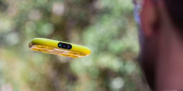 Snap的Pixy无人机售价230美元,顶部有一个按钮,可以激活四种预设飞行模式中的一种,它可以在不使用控制器的情况下漂浮、绕轨道飞行和跟随用户。